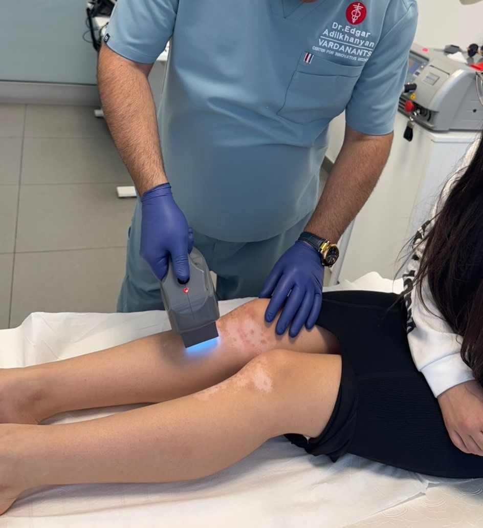 The Excimer laser precisely targets the affected areas of the skin without damaging the surrounding healthy tissue. The laser light suppresses inflammatory immune processes in the skin, promotes normal cell function, and activates melanocytes (in cases of pigmentation restoration).